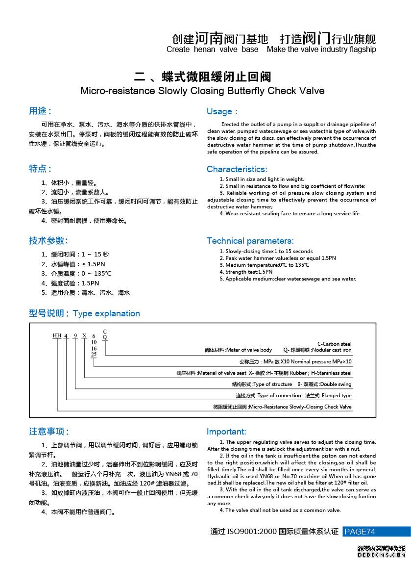 可用在凈水、泵水、污水、海水等介質(zhì)的供排水管線中,安裝在水泵口。停泵時,法本的緩閉過程能有效的防止破壞性水錘,保證管線安全運(yùn)行。